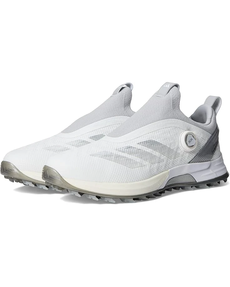 - Stride with purpose, swing with precision. The adidas® Golf Adizero ZG BOA Spikeless Golf Shoes are designed for the golfer who seeks zero compromise on performance and comfort. Built on a hybrid Lightstrike and Lightstrike Pro midsole, these shoes offer lightweight cushioning while still retaining superb responsiveness. The Dynamic Torsion System stabilizes and amplifies the foot during multi-directional movements while the SPIKEMORE rubber outsole with advanced design of undercut and cone lugs provides robust traction in any condition. These sneakers are made of a faux leather upper, rubber insole, and leather lining. The BOA® fit system offers micro-adjustability and a customized fit, ensuring your focus remains on the game.