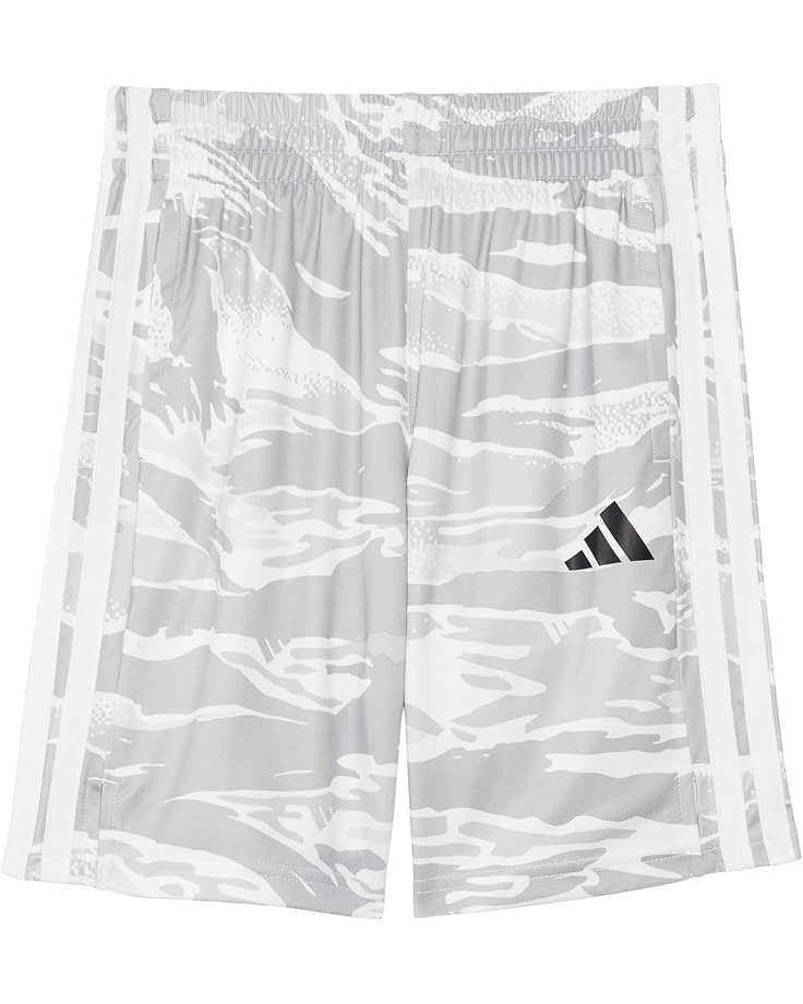 - Stand out from the crowd with your cool yet comfortable style wearing adidas® Kids AOP Tiger Camo Shorts. Crafted in an above-the-knee silhouette with a soft knit fabric, the pull-on style shorts are a must-have in your wardrobe. These feature a mid-rise elasticated waistband, two seamed pockets on the front, signature three-stripe detail, an allover camouflage print, and an adidas® logo detail on the front.