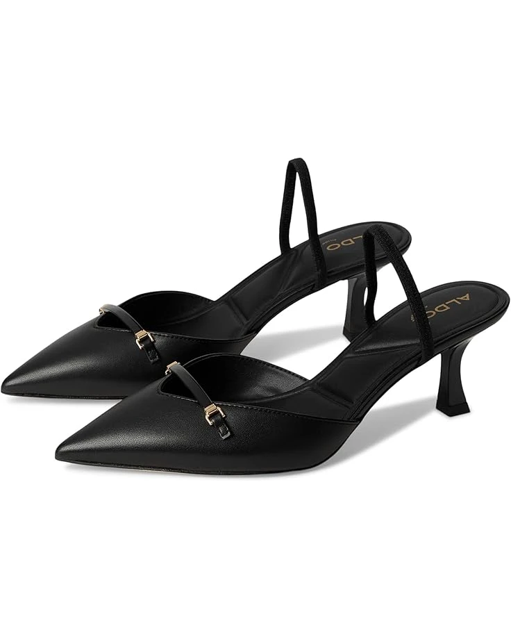 - Crafted for the confident, the ALDO® NAILAH is perfect for nights that deserve a statement. Crafted from synthetic upper, waterborne polyurethane lining, and synthetic lining, this pair of sandals features pointed toe, sling back strap, slip-on style, stiletto heel, and metal ornament on the vamp.
