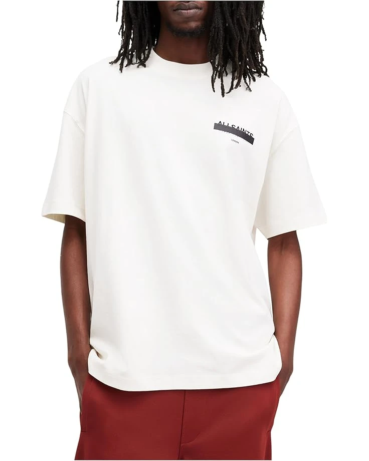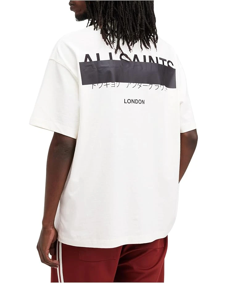 - Wear your personality on your sleeve with oversized AllSaintsâ„¢ Redact Short Sleeve Crew neck shirt. This cotton shirt features ribbed neckband and refined twin-needle stitch detail, short sleeves with dropped shoulders, and signature embroidered logo on the left chest and at the centre back. Its pullover style and straight hem make it an easy-to-wear everyday essential.