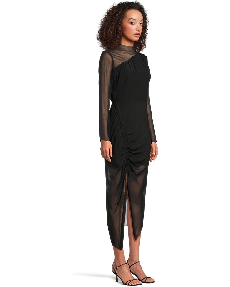 - Style up your look and raise the glam quotient wearing AllSaintsâ„¢ Rizo Dress. The dress features a mock neck, long sleeves, ruched detailing at the side waist with a tie-up detail at the leg, and a flattering below-the-knee silhouette. The allover printed details elevate the style.