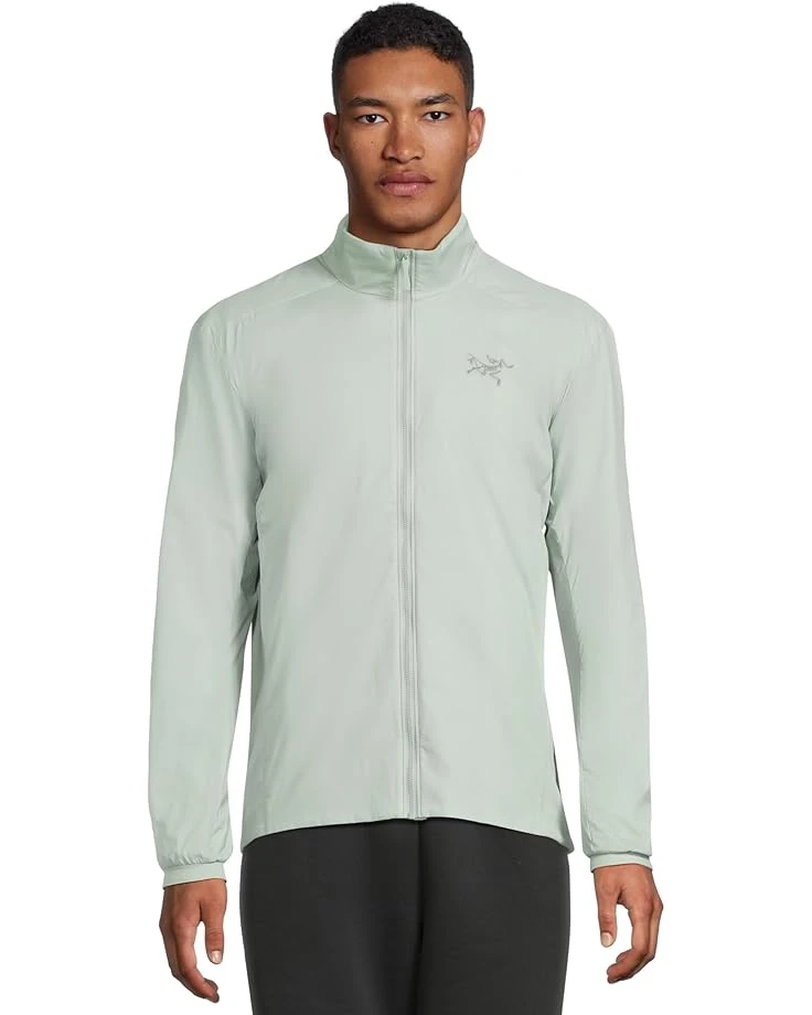- Get a stylish blend of style and comfort wearing the Arc’teryxĀ® Atom Jacket. It has high neckline and long sleeves with stretchable knit cuffs. The zippered front closure gives a secured fit. The Tyono⢠20 face fabric is wind-and weather-resistant.