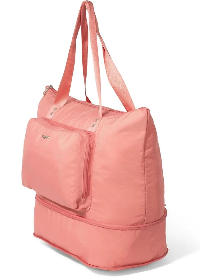 - Travel in style and ease by carrying the Baggallini® Carryall Expandable Packable Tote. Crafted with a lightweight nylon construction, this water-resistant tote has an expandable design. Designed with a built-in travel sleeve, it effortlessly slips over your suitcase handle, making your journey a breeze. The zippered closure adds an extra layer of security, while the dual grab handles ensure comfortable and convenient carrying.