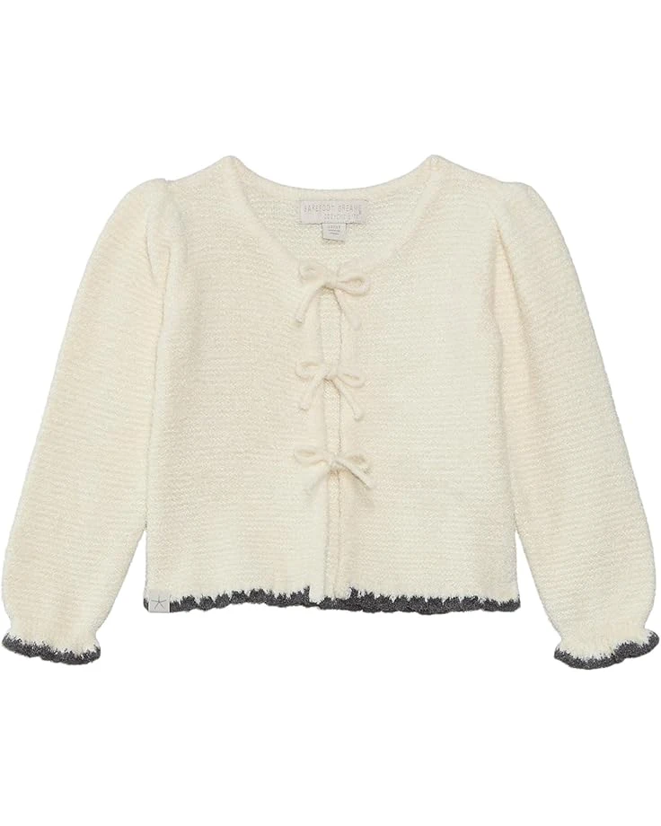 - The Barefoot Dreams® Kids Cozychic Ultra Lite® Toddler Scalloped Cardigan is made with a rib stitch, crew neck, and long sleeves for ultimate comfort. The tie front details and contrast colored scallop hem at the sleeves and body add a stylish touch.