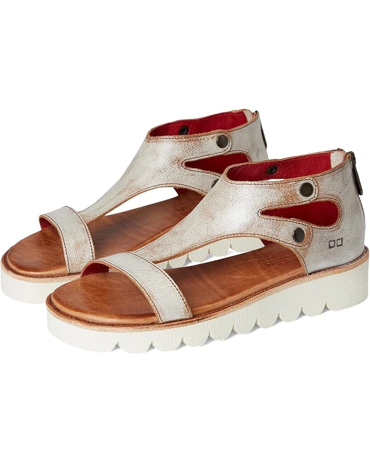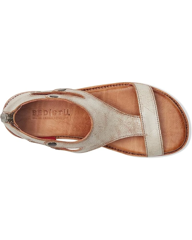 - Step out in style in the Bed Stu® Soni 2 sandals. This platform sandal is crafted from a leather upper, back zipper closure for easy entry, metal stud accents, round open toe silhouette, and leather lining.