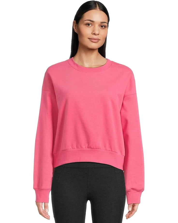 - Be someone’s airport crush, look cozy-chic at Saturday brunch, or just keep things cozy at your favorite cafe wearing the Beyond Yoga® On The Go Pullover. Wherever you go, your comfort will come with you in this classic pullover. Its crew neckline and dropped shoulders with a relaxed, loose fit complete the look. This pullover is styled with long sleeves and a ribbed neckline, cuffs, and hemband.