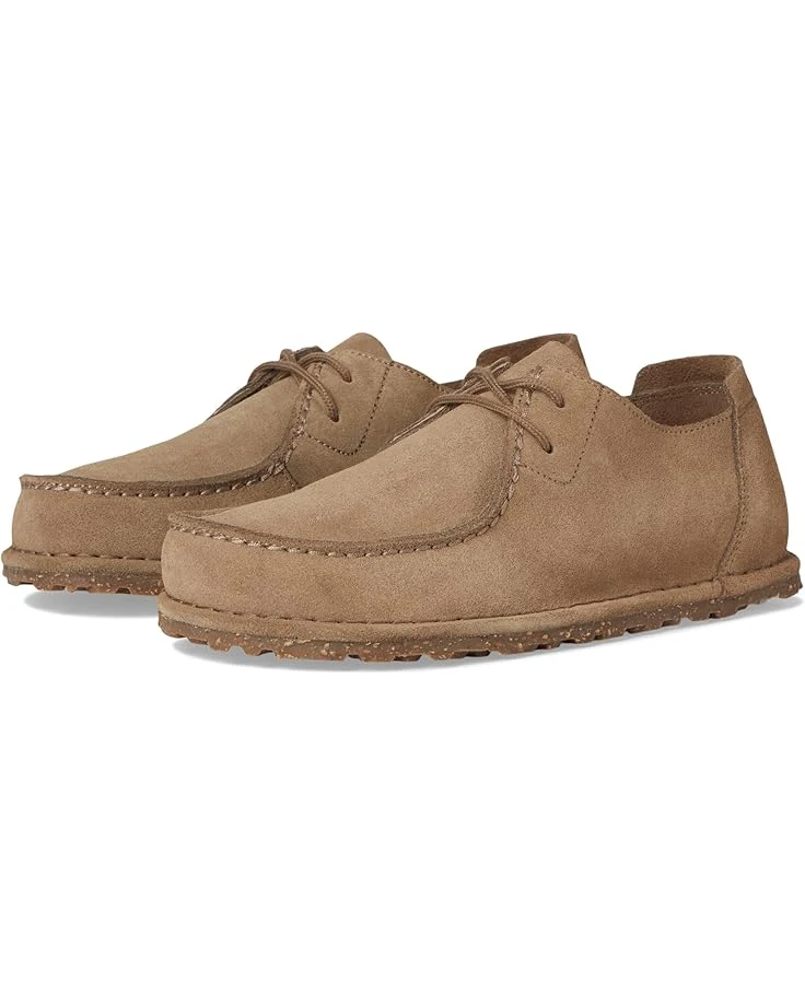 - The Birkenstock® Utti Lace Up Suede Loafers is a moccasin-inspired style designed for unmatchable comfort. The utti shoe is designed for ease, with a soft heel tab and adjustable rounded laces. Inside, a premium Deep Blue footbed provides layers of support, with a classic suede upper, moisture-wicking microfiber lining and polyurethane base that optimizes your natural walking motion. The natural cork and rubber blend outsole for added traction.