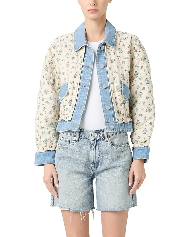 - The Blank NYCâ„¢ Love Birds jacket is a quilted printed jacket with denim detail. Its buttoned front closure offers easy on and off while the cotton fabric adds to its comfort. This denim jacket has long sleeves, buttoned cuffs, a collared neckline, and a straight hem. A stylish addition to your wardrobe, this button-down jacket is perfect to style up your looks and outfits.