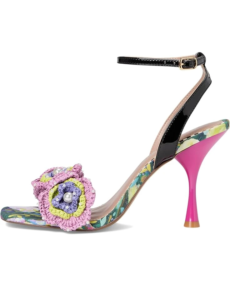 - Perfect for any fashionista, the Blueâ„¢ by Betsey Johnson Ainsley sandals are sweet and girly with their flower embellishments. These sandals are crafted with a faux leather upper, insole, and lining. The adjustable ankle strap ensures a secure fit.