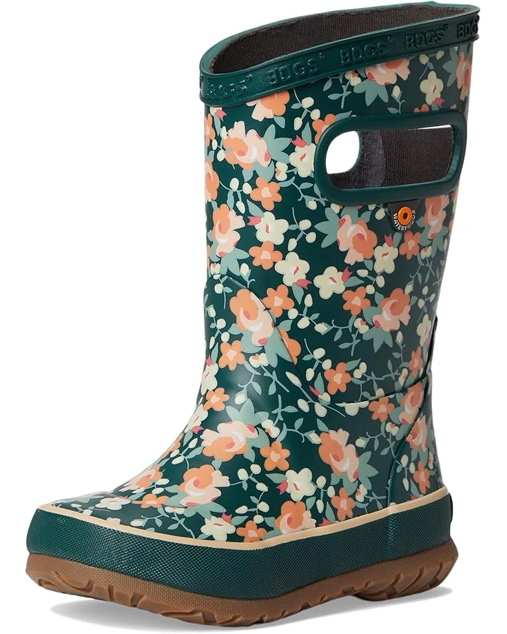 - As your little develop advanced puddle-jumping techniques, they should have state-of- the-art equipment. The Bogs® Kids Rainboot Small Floral are perfect for rainy days. Crafted from rubber upper, fabric lining, and polyurethane insole, this pair of boots features round toe, DuraFresh natural bio-technology activates to fight odors, BOGS Max-Wick evaporates sweat to keep feet dry, Bio-based footbed provides comfort while minimizing environmental impact, lightweight construction, and easy on handles.