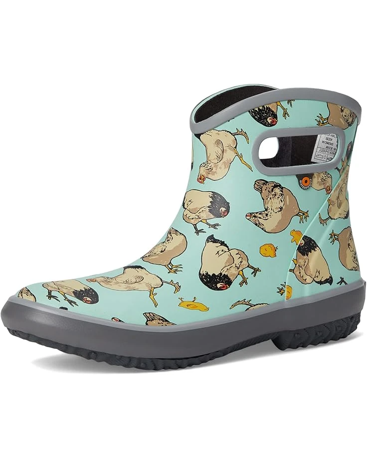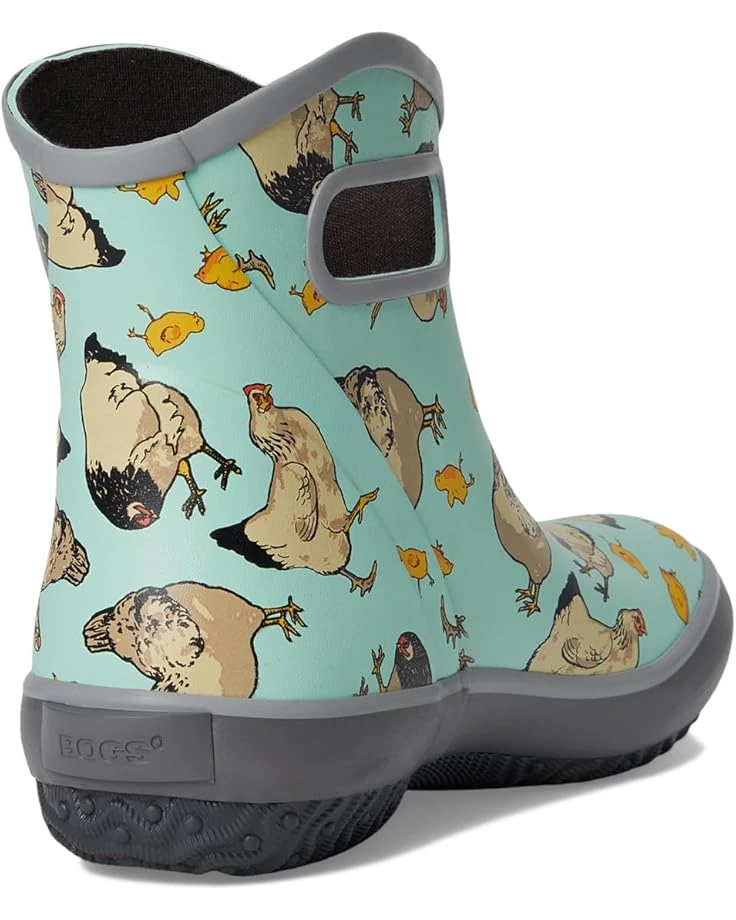 – Steel shank for support and stability;LINING: Fabric; WATER RESISTANCE LEVEL: Waterproof; DESC: There is absolutely no reason why you can’t rock these Patch Slip-Ons in the garden, rinse them off and continue said rocking at the wine bar.; SHAFT CIRCUMFERENCE: 0; SHAFT CIRCUMFERENCE UNIT: Inches; SHAFT HEIGHT: Ankle; SOLE: Rubber; TOE STYLE: Closed Toe; CLOSURE: Pull-On; HEIGHT MAP: Ankle-High; HEEL HEIGHT: n/a; HEEL HEIGHT UNIT: n/a; HEEL TYPE: No Heel; INSOLE: Polyurethane; COO: China; SINGLE SHOE WEIGHT: n/a; ITEM WEIGHT UNIT: n/a; OUTER MATERIAL: Rubber - There is absolutely no reason why you can’t rock these Bogs® Patch Ankle Chickens Slip-Ons in the garden, rinse them off and continue said rocking at the wine bar. Crafted from rubber upper, fabric lining, and polyurethane insole, this pair of shoes features round toe, waterproof, Bio-based footbed provides comfort while minimizing environmental impact. Built in heel kick for hands free removal. Crafted with ultra-soft and flexible rubber. BOGS Max-Wick evaporates sweat to keep feet dry. DuraFresh natural bio-technology activates to fight odors. Steel shank for support and stability.