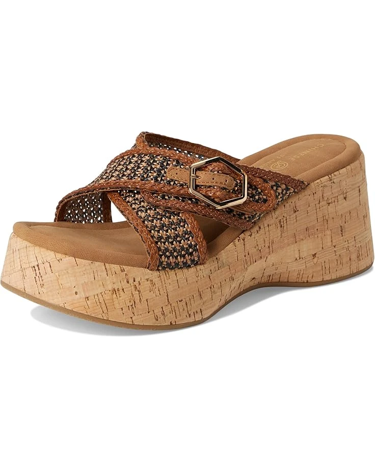 - The Chinese Laundry® Loulou comfort wedge is a savvy choice for the chic aficionado aiming to blend functionality with substantial all-day comfort. Featuring an intricate woven cross band, open round toe, slip-on style, and a statement buckle, padded sock and cork wedge, the loulous will keep your stride grounded and gorgeous. Pair with bermuda shorts and a linen corset to heighten your warm-weather wardrobe.
