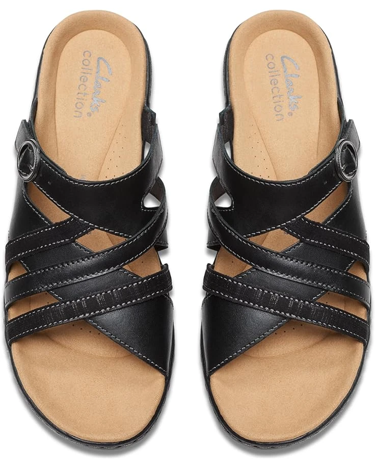 - Give yourself a better choice to walk free wearing Clarks™ Merliah Holly sandals. A leather upper, strappy vamp with adjustable ankle strap and buckle closure ensure right fit on every step. Sandals have mesh lining and rubber insole for cushioning.