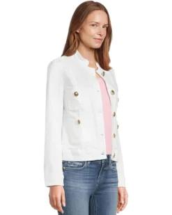 Liverpool Los Angeles Collarless Jacket With Fray & Lace in Soft Touch Twill | Coats & Outerwear