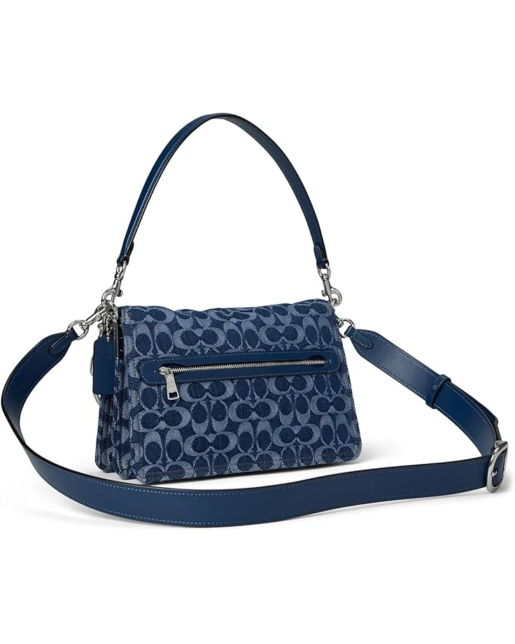 - Carry your dignity with the COACH™ Chain Tabby Shoulder Bag In Signature Denim. Crafted from cotton, and leather, this bag features magnetic snap closure, one detachable chain strap, one detachable shoulder strap, one detachable, adjustable crossbody strap, interior snap and interior multifunction pockets. It comes with one exterior zippered pocket, and brand detailing on the front..