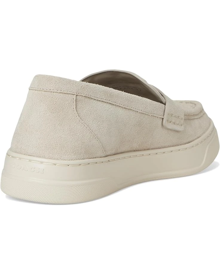 - Walk with pride wearing the COACH® Hybrid Loafer With Signature. Crafted from suede upper, man-made leather lining, and EVA insole, this pair of shoes features round toe, slip-on style, decorative strap with logo hardware at vamp, embossed logo pattern at vamp, and brand detailing on the footbed.