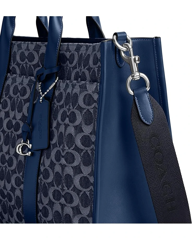 - Crafted for women who appreciate both sophistication and convenience, the COACH™ Wesley Tote In Signature Denim is a perfect option. Crafted from leather, this bag features zippered top closure, one magnetic snap pocket, two top carry handles, detachable, adjustable crossbody strap, one interior zippered pocket, and allover brand detailing.