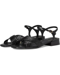 - Vintage meets visionary: Cole Haan® Patie Sandals. Crafted with a leather upper and soft square toe, these cross-band sandals feature an ankle strap with a functional buckle and a hidden elastic under the buckle for a snug yet flexible fit. The architectural-inspired laser cut perforated detail adds a touch of sophistication to every step. Built with a 3D Lux comfort sock and leather lining, these sandals offer unrivaled support. The EVA insole and buffed synthetic outsole with recycled rubber content and woven laser design ensure lasting traction and comfort, making them perfect for all-day wear.