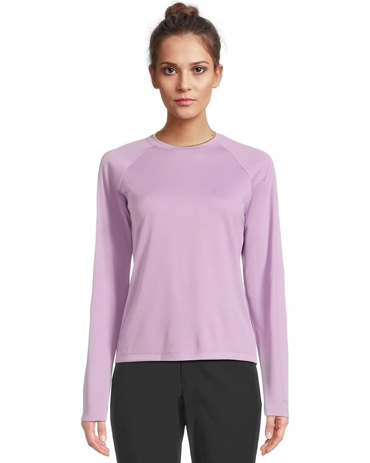 - Casual and stylish, the pull-on style Columbia® PFG Solar Stream™ Long Sleeve is perfect for your everyday wear. The regular-fit tee has a crew neckline, long sleeves, and a straight hemline. The sun protection cuffs extend over the back of your hands to block out harsh rays. The tee has an Omni-Shade™ UPF 50 fabrication that protects your skin during outdoor activity by blocking harmful Ultraviolet A and Ultraviolet B rays (UVA and UVB).
