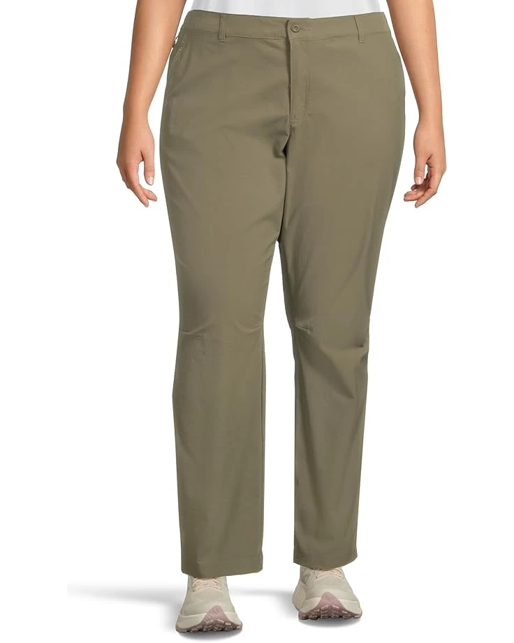 - Adventure, elevated-effortless style meets ultimate protection! Step into the great outdoors donning the Columbia® Plus Size Leslie Falls™ Pants II-designed for fearless explorers who demand both comfort and performance. Featuring Omni-Shade™ Broad Spectrum UPF 50, these pants shield you from harsh sun rays, while Omni-Shield™ advanced repellency keeps you dry and stain-free, no matter the elements. The pull-on, mid-rise fit ensures effortless wear, with belt loops and a zip-fly button closure for a secure touch. Thoughtful articulated knees enhance mobility, and hand pockets add function to your adventure-ready style.