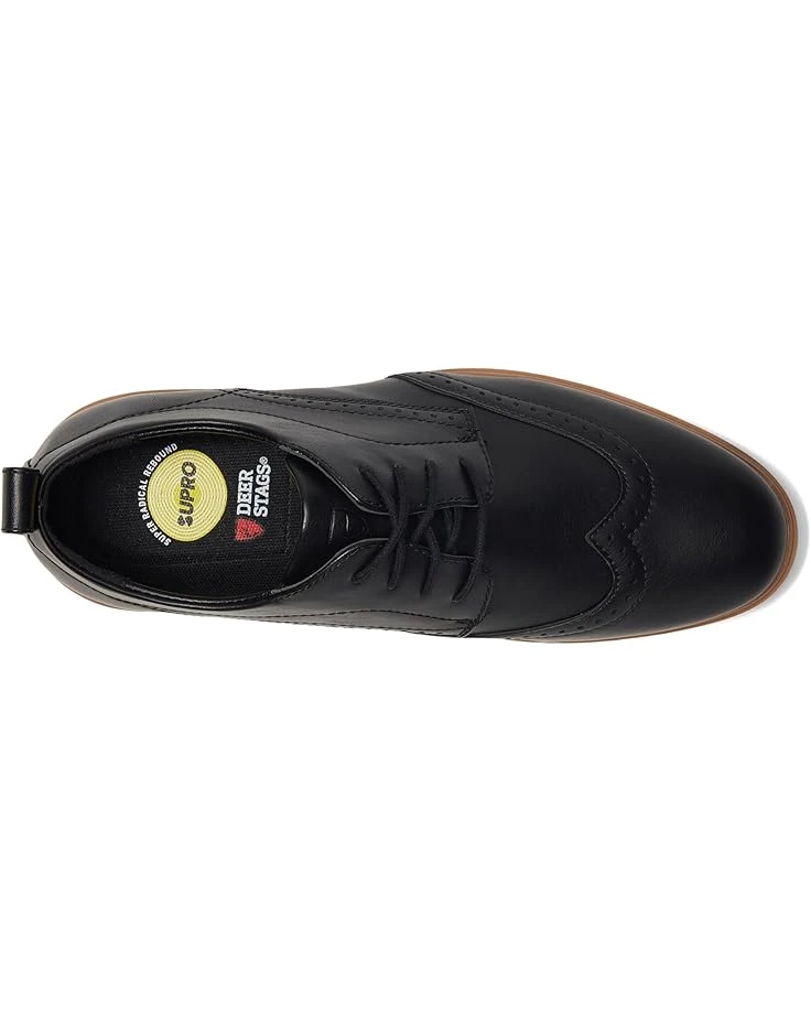 - Elevate your everyday choosing the Deer Stags® Delgado wingtip dress oxford and its patented SUPRO comfort features. Formal shoes have never been this comfortable, thanks to a thick heel bubble that puts a spring in your step – literally! It’s so padded you can see it in action when you turn the shoe around. Propelling you forward with every step, the energy return and shock absorption keep your feet energized and refreshed even with prolonged wear. Made from simulated leather, with memory foam and arch support. Our reimagined Super Radical Rebound Technology propels you forward with boundless energy while cushioning and supporting your foot.