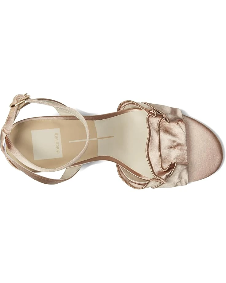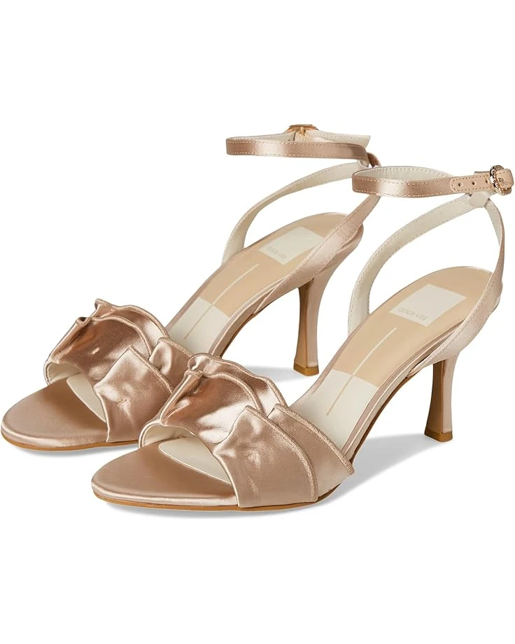 - The Dolce Vita® Lunete perfectly blends in with any ensemble while offering a standout look. Featuring a charming ruffled upper strap, the footwear is accented by a crisscross ankle strap and an adjustable buckle closure. The open almond toe silhouette adds a modern touch, while the chic kitten heel ensures comfort and style.