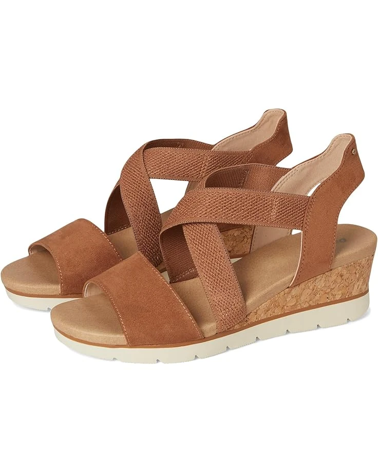 - The Dr. Scholl’s® Just Cute, womens strappy wedges with a sporty hybrid design and casual comfort. Crafted from canvas upper, fabric lining, and EVA insole, this pair of sandals features open round toe, slips on with stretch gore instep strap for easy on/off, flexibility, and secure fit. Insole Technology with cushioning, comfort, and arch support.