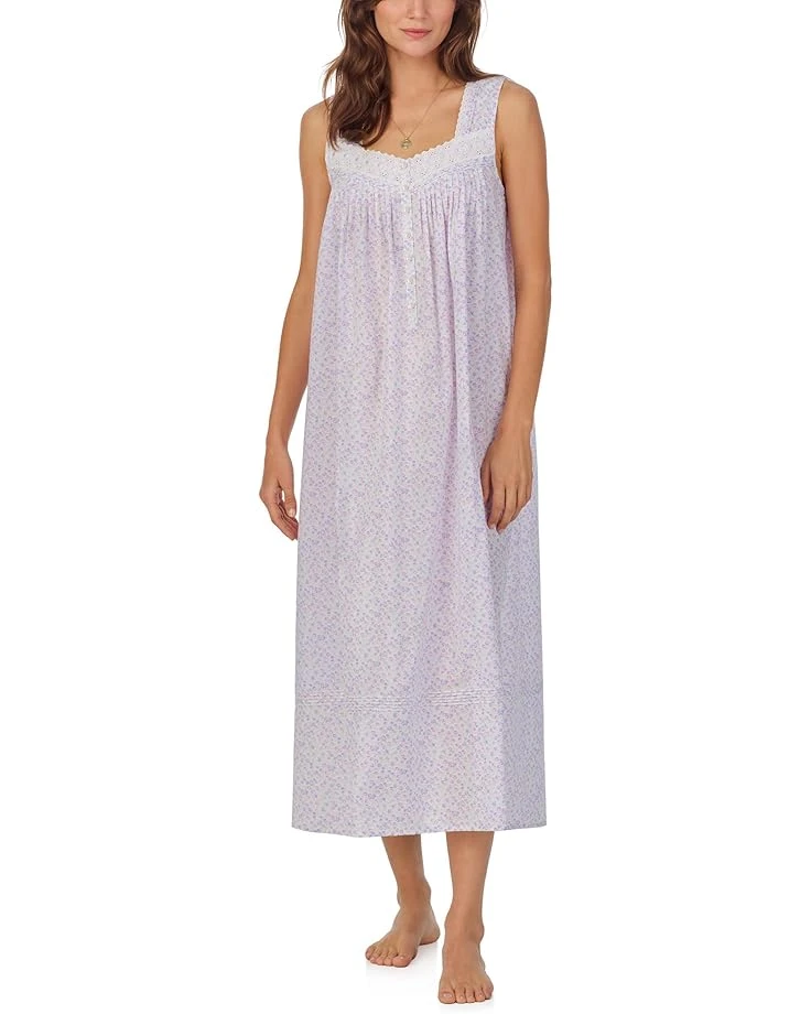 - Walk into the ethereal charm of the Eileen West™ Cotton Woven Sleeveless Ballet Gown, where romance meets comfort. The sleeveless design and square neck with delicate lace accents create a classic yet modern silhouette. A partial placket adorned with akoya shell buttons adds a touch of sophistication, while the breezy pull-on style ensures effortless wear. Falling gracefully below the knee, the gown is adorned with a captivating floral print that radiates feminine allure.