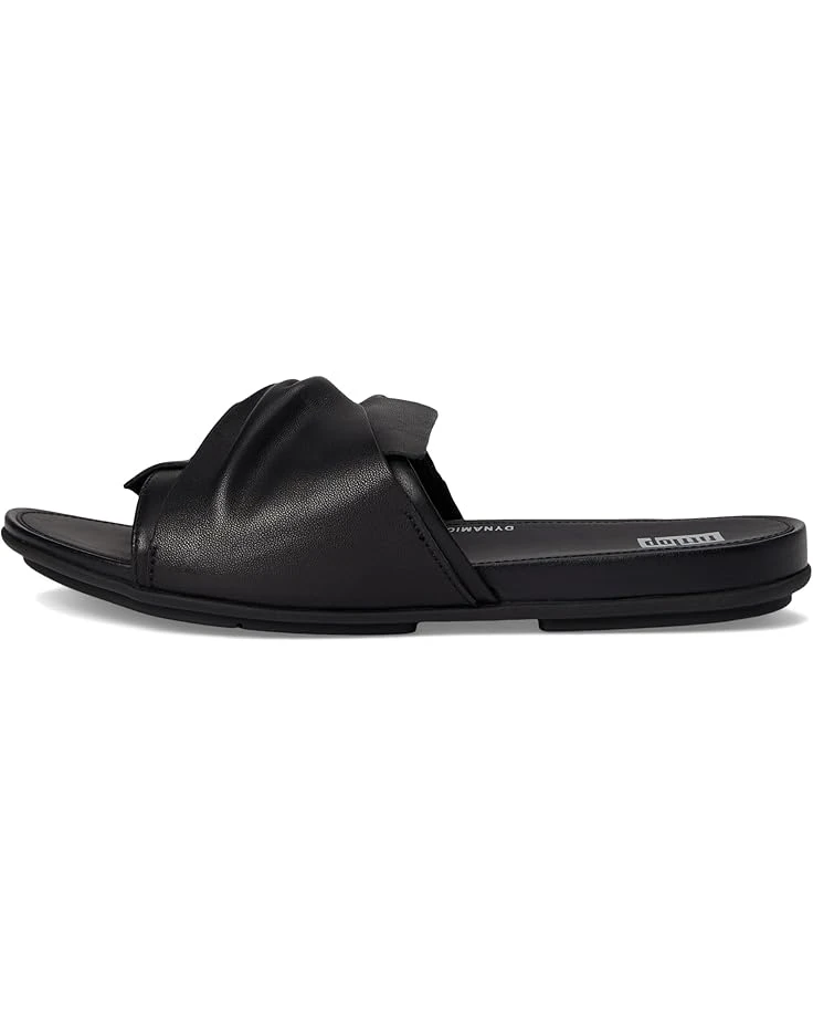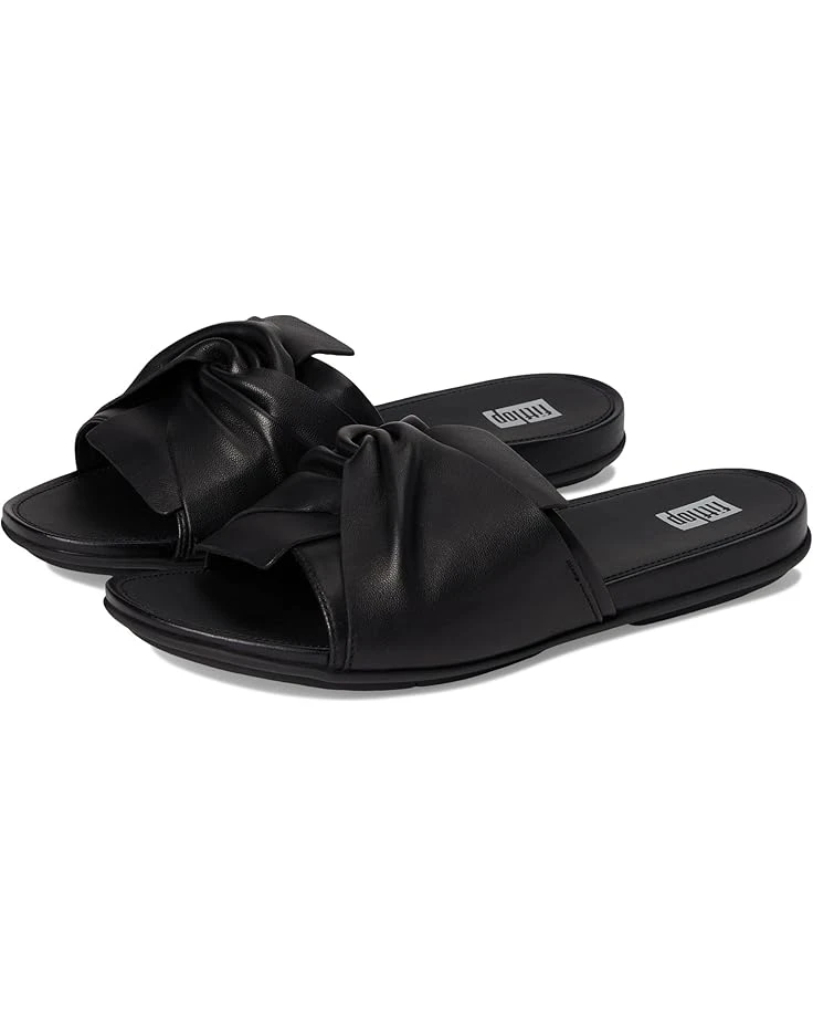 - The FitFlop™ Gracie Soft-Twist Leather Slides take ‘sleek’ to the extreme. They look like the kind of chic flats that can be hard work to walk in, but slip them on and you’ll think you’re in sneakers. Thanks to their anatomically contoured EVA-foam footbed and FitFlop’s Dynamicush™ cushioning hidden in the faux-leather wrapped rubber outsole that maximizes comfort. They are crafted in a luxe butter-soft nappa leather upper with a soft sculptural leather bow detail. The rubber insole and polyester lining provide added comfort. Their concealed elastic insert enhances the fit. These flat sandals are ergonomically engineered to help optimize your body’s alignment, natural movement, and energy. APMA-accepted, these slip-on sandals team with almost any warm-weather look.