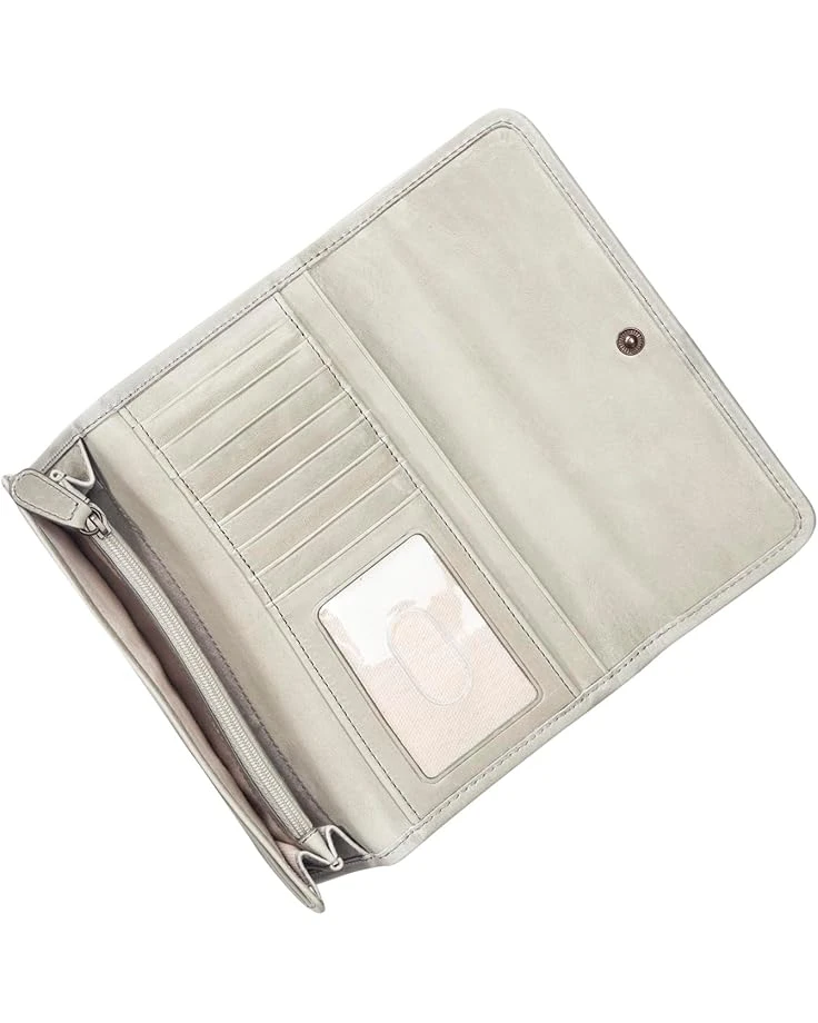 I love the look and the feel of this wallet . Holds everything. Very nicely designed. Frye knows what they are doing . Got the Melissa hobo bag . Now I want to get the Melissa hobo that matches the wallet . The bronze one so nice.
