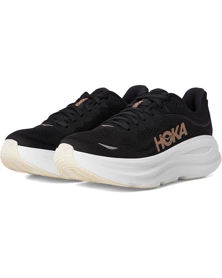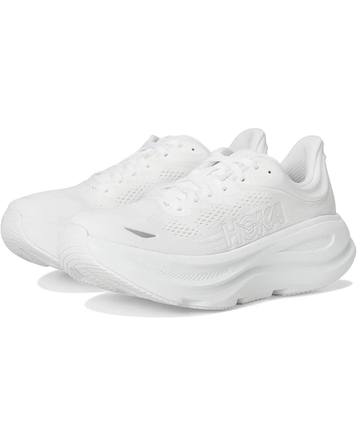 - Take on your sports and fitness journey with style and confidence wearing Hoka® Bondi 9 Sneakers. The low-top sneakers are crafted with a jacquard knit engineered mesh upper with zonal breathability, cotton lining, textile insole, and a new premium foam midsole that delivers a soft, resilient ride. This ultra-cushioned, round toe sneaker is finished with Durabrasion rubber outsole to combat high wear zones. Plus, the Hoka® branding on the side panel adds an authentic touch and the lace-up closure ensures a secure fit.