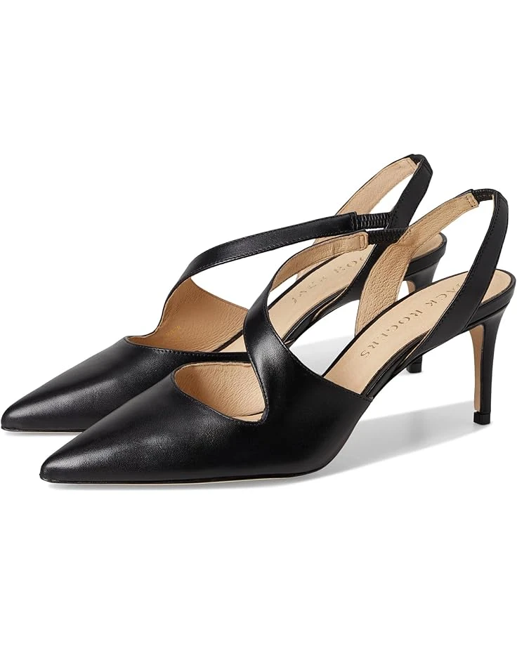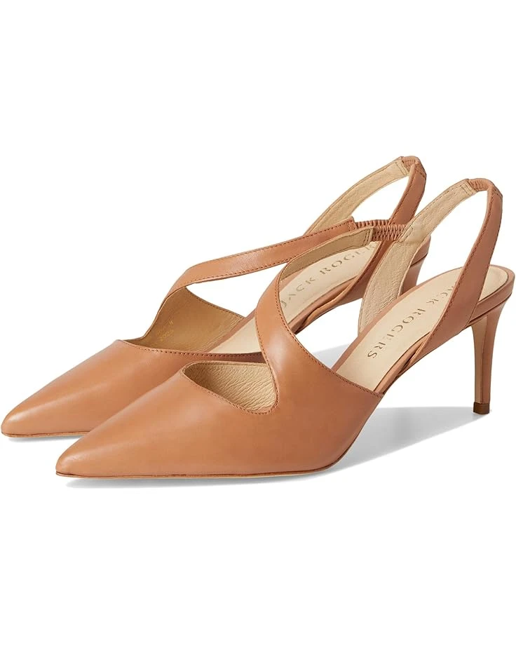 - Walk with attitude wearing the bold, and statement making Jack Rogers® Ansley Pump. Crafted from leather upper, lining, and insole, this pair of sandals features pointed toe, double ankle strap detailing, stiletto heel, and brand detailing on the footbed.