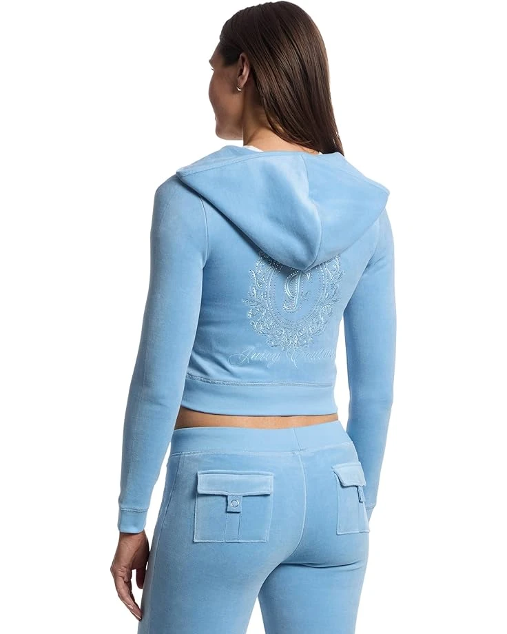 - Throw it back to the golden era of glam wearing the Juicy Couture® Heritage Cropped Track Jacket-a Y2K ICON reborn! This fitted, ultra-chic jacket hugs your silhouette with effortless elegance, featuring a sleek V-neck, long sleeves, and a zippered front closure adorned with the signature rhinestone “J” pull. Luxe kangaroo pockets add both style and function, while the glitter graphic logo on the back radiates iconic Juicy energy.