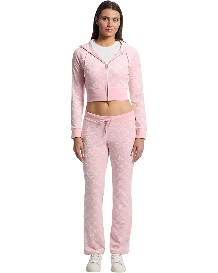 - Own the moment in effortless luxury-because cozy never looked this chic! The Juicy Couture® Juicy Raglan Corset Hoodie wraps you in plush velour, delivering a buttery-soft feel with a glamorous edge. Designed with a hooded neck and adjustable drawcord, it lets you style your vibe your way. The zippered front closure adds versatility, while long sleeves keep you snug and stylish. A cropped silhouette with an all-over embossed logo brings signature Juicy charm, blending iconic Y2K nostalgia with modern flair.
