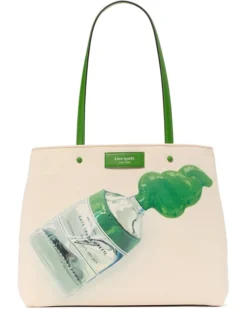 - Get ready to turn heads carrying the Kate Spade New York® Squeeze Tote Bag. Crafted from high-quality cotton material, this stylish tote is perfect for keeping all of your essentials in one place. With a sleek flap closure and comfortable dual shoulder straps, you’ll breeze through your day with ease. Plus, the zippered interior pocket keeps your belongings secure and organized.