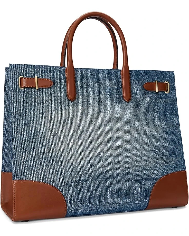 Lauren Ralph Lauren Leather-trim Denim Large Devyn Tote Bag | Handbags