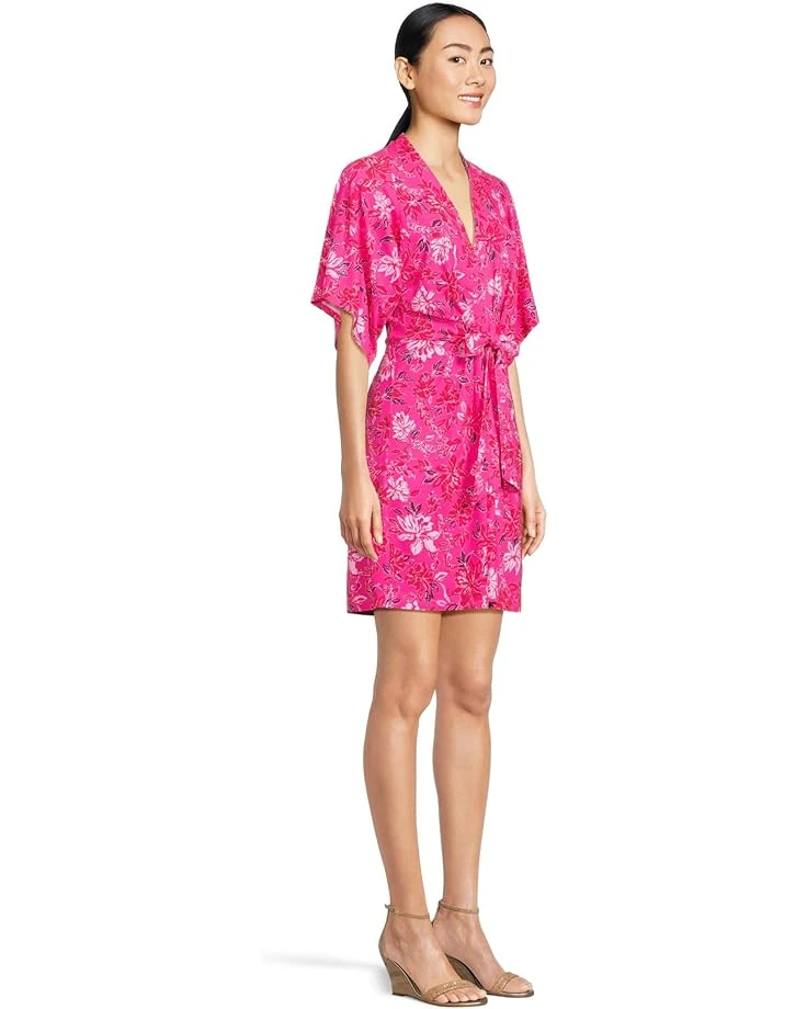 - Stylish yet simple, the Lilly Pulitzer® Wisteria Elbow Sleeve V-Neck Dress gives off an effortless fashion statement. The fit-and-flare dress features a deep V-neckline, kimono sleeves, functional front tie detail at waist, and an above-the-knee silhouette. The allover floral print adds a fun element to the look.