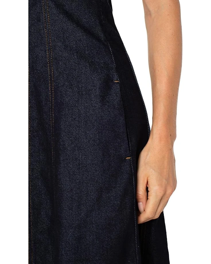- Slip into the Liverpool™ Los Angeles Smocked Back Fit and Flare Midi Dress-a timeless denim beauty designed for workdays and nights out alike. Featuring a flattering classic fit, sleeveless silhouette, and chic square neckline, this dress exudes effortless charm. The smocked back ensures a comfortable, flexible fit, while slant pockets add a touch of practicality. Its pull-on design makes getting ready a breeze, so you can focus on turning heads wherever you go.