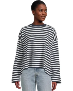 - Adventure-ready, the Madewell®Long Sleeve Easy Tee is an all-day comfy piece. It features a rib-knit crew neckline with an allover stripe print pattern and trendy drop shoulder long sleeves.
