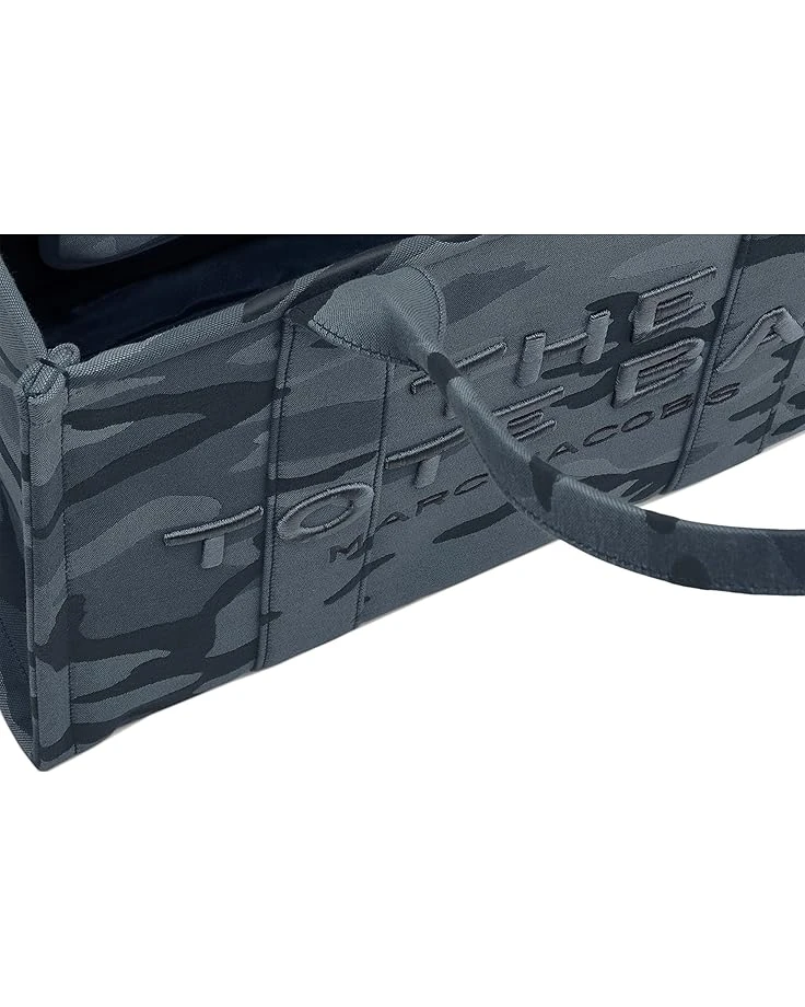 - The Marc Jacobs® The Camo Jacquard Large Tote Bag is a stylish and spacious accessory designed for functionality. It features a secure zipper top closure and offers ample storage with one interior zip pocket and two slip pockets. The bag is equipped with dual handles, making it easy and comfortable to carry. Its unique camo jacquard pattern adds a trendy touch to your look while keeping your belongings organized and easily accessible.