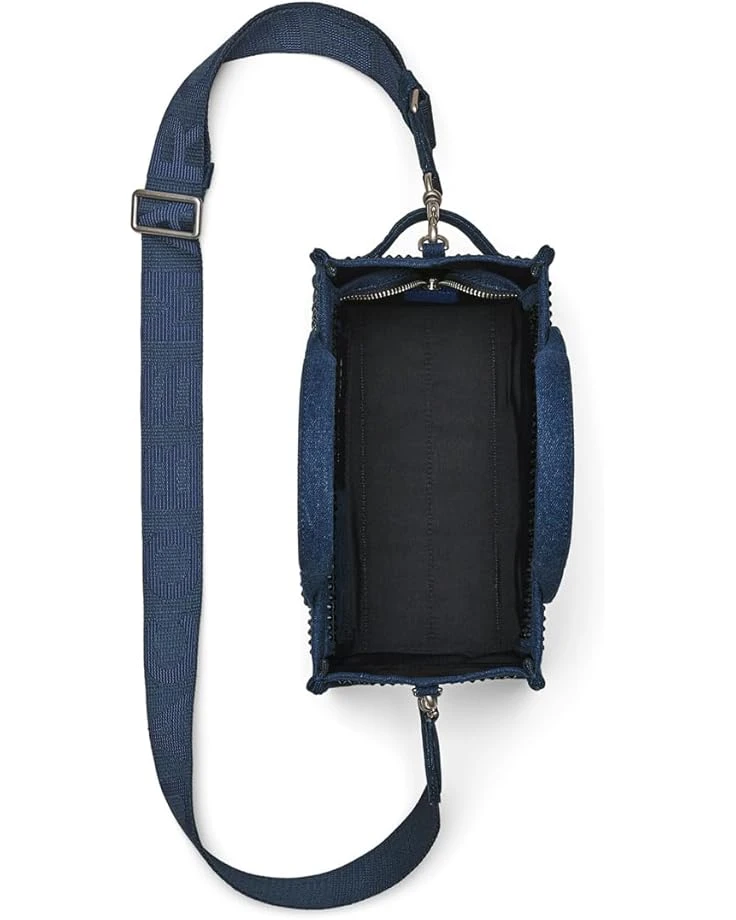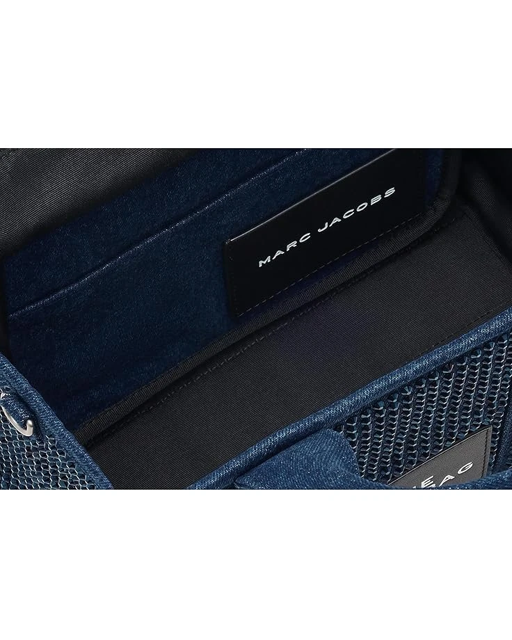 - Embrace your contemporary and up-to-date look carrying the Marc Jacobs® The Crystal Denim Small Tote Bag. This handbag features one detachable and adjustable crossbody strap, one main compartment, and zippered closure.