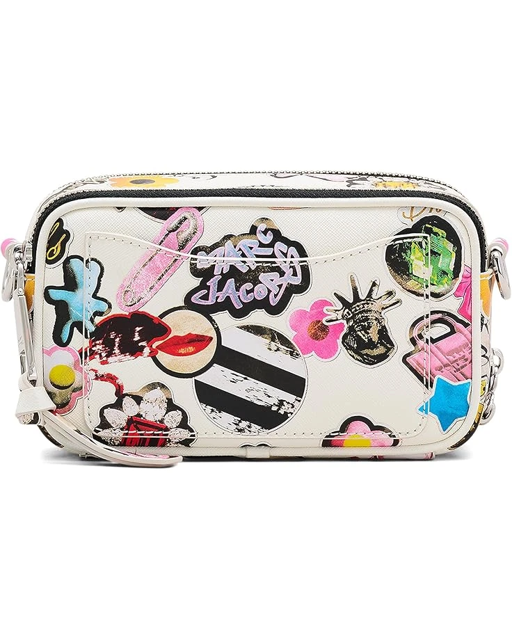- The Marc Jacobs® The Sticker Snapshot is a trendy and functional accessory, perfect for your everyday needs. It features two zip compartments that provide ample storage space for your essentials. The bag includes a removable and adjustable webbing strap, allowing you to wear it comfortably as a crossbody or over the shoulder. Additionally, it has one exterior slip pocket for quick access to small items.