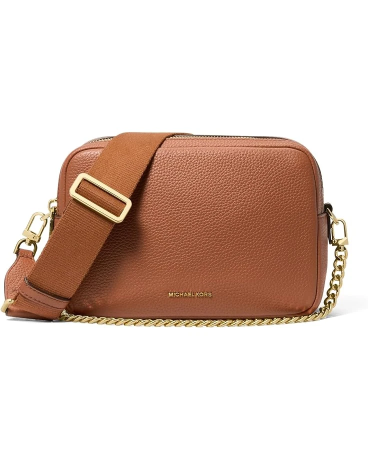 - The MICHAEL Michael Kors® Bryant Medium Double Zip Chain Camera Crossbody is your perfect blend of elegance and utility. Crafted from solid pebble-embossed leather with a luxurious polyester lining, this sleek crossbody bag is a style statement in itself. Featuring a secure zippered closure, two thoughtfully designed pockets, and a spacious main compartment, it ensures your essentials stay organized without compromising on sophistication. The adjustable chain crossbody strap adds a touch of glam while providing hands-free convenience for your busiest days. Lightweight, versatile, and undeniably chic, this crossbody is the ultimate companion for city strolls, casual outings, or evening soirees.