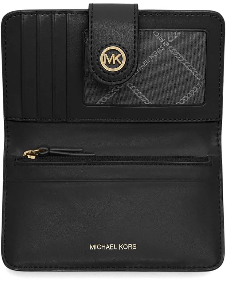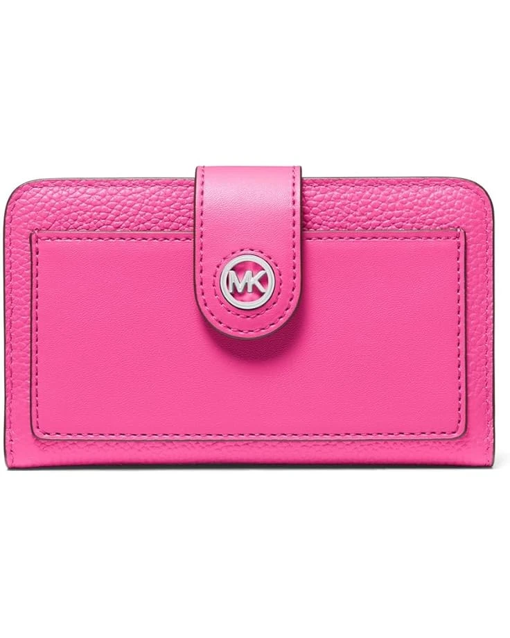 - Crafted for queens, the MICHAEL Michael Kors® Mk Charm Medium Tab Pocket Bifold. Crafted from leather, this bi-fold wallet features magnetic snap closure, one zippered interior pocket, one interior slip pocket, four credit card slots and one ID holder. It comes with one exterior slip pocket and brand logo on the front.