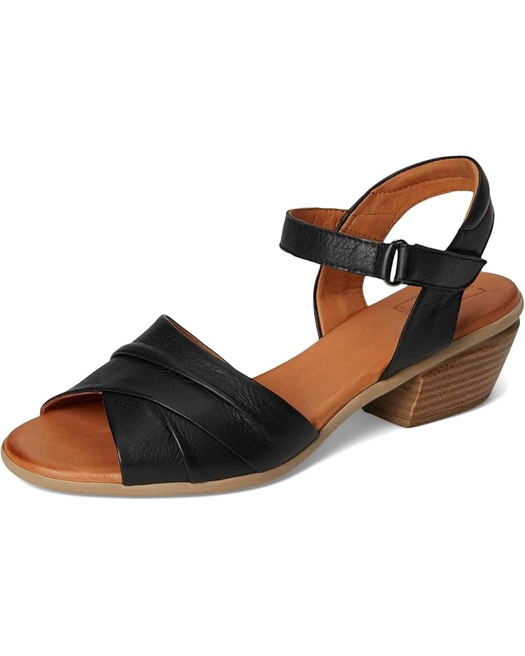 - Elevate your style quotient wearing the Miz Mooz® Kacie. Crafted from leather upper, lining, and insole, this pair of sandals features open round toe, ankle strap detailing, adjustable buckle closure, cone heel, and brand detailing on the footbed.