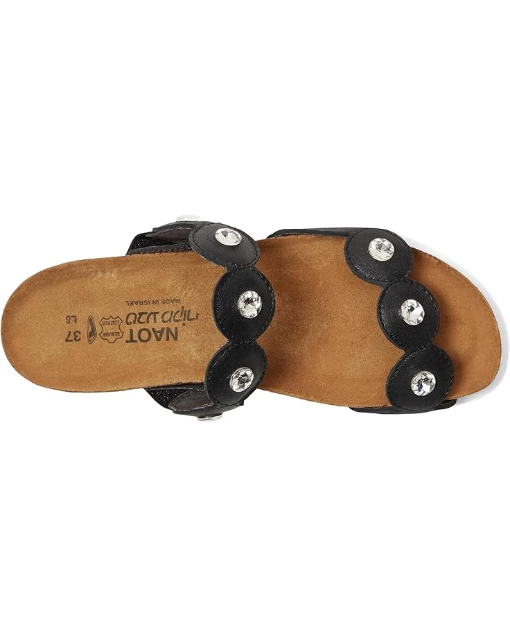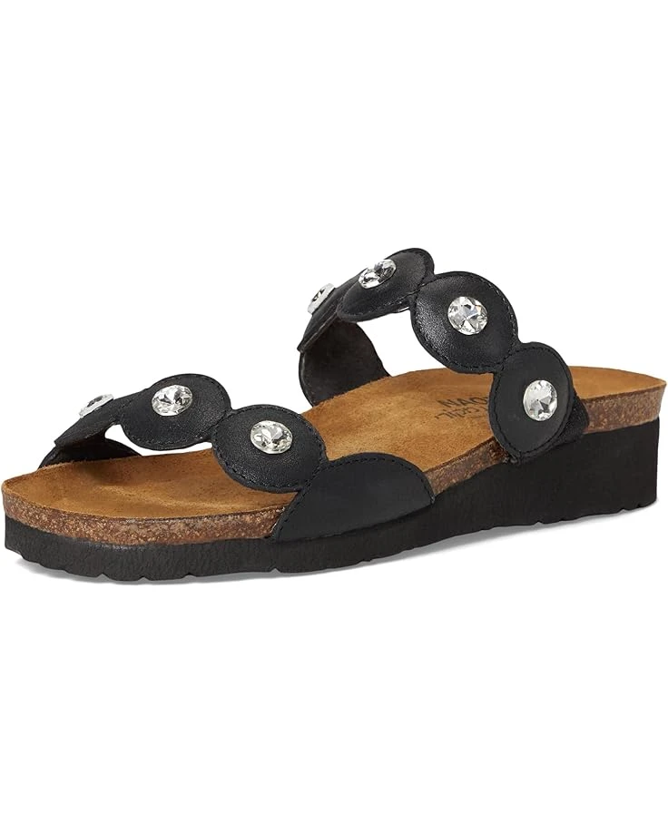 - Meet Naot® Hailey – your perfect blend of comfort and glamor. With its sleek design featuring gore and dazzling rhinestone accents, this slide adds a touch of sparkle to any outfit. The easy slip-on design ensures convenience without compromising on style, making Hailey the ideal choice for any occasion. Crafted with Naot’s anatomic cork and latex footbed wrapped in pampering suede and molds to the shape of your foot with wear, ensuring personalized comfort. Plus, it’s accepted by the American Podiatric Medical Association (APMA) for promoting good foot health.