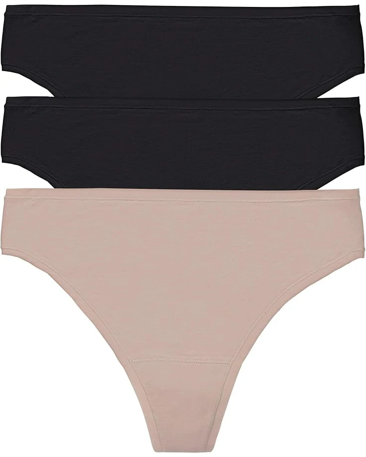 - Feel the bliss of barely-there comfort wearing the Natori™ Bliss Bare Cotton Thong 3-Pack! Designed with your everyday ease in mind, these low-rise thongs feature a pull-on style and elasticized waist for a secure yet gentle fit. Sitting perfectly at the hip, each piece is crafted from luxurious Pima cotton that feels soft and breathable all day long. The modern silhouettes offer a sleek, tailored look, blending effortlessly under any outfit. With a thoughtful gusset design and hand-wash-only care, these panties promise long-lasting quality and comfort.