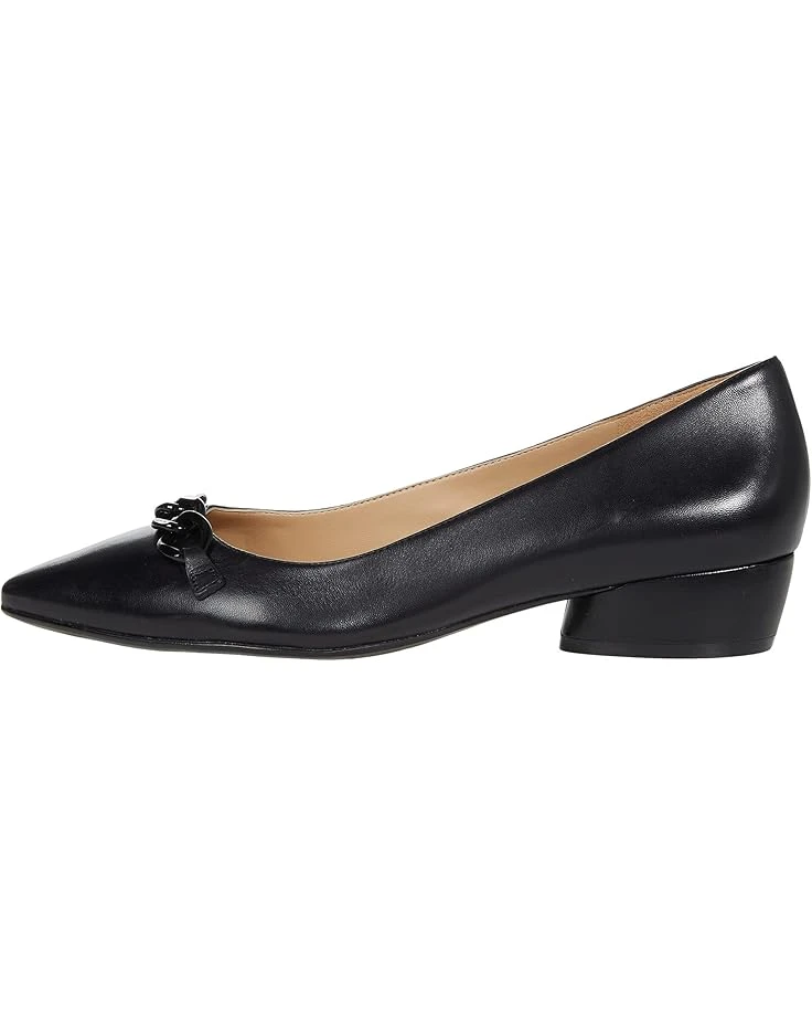 - The Naturalizer® Becca has a low block heel and slip-resistant sole that ground this pointy-toe pump outfitted with a glinting chain and contoured footbed.