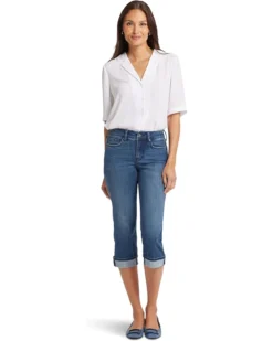 - The NYDJ® Marilyn Crop Cuff capris redefine casual chic with a mid-rise and a sleek skinny fit. Their cropped length and on-trend cuff detail add a modern edge. What sets them apart is NYDJ’s signature Lift Tuck® Technology, featuring a patented slimming panel with a crisscross design that beautifully shapes and supports your curves.