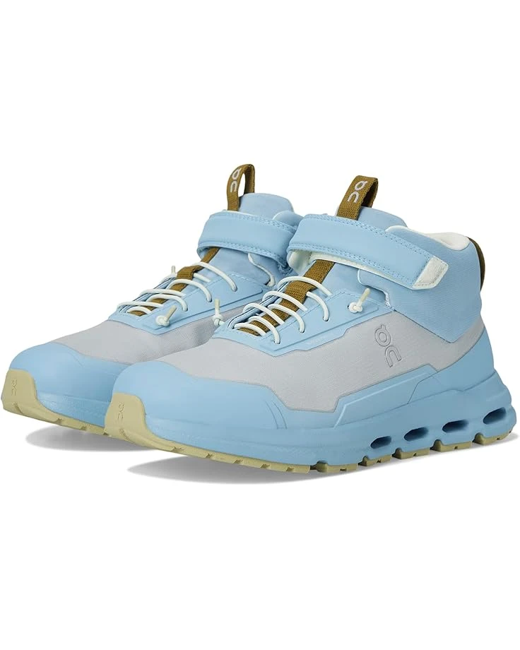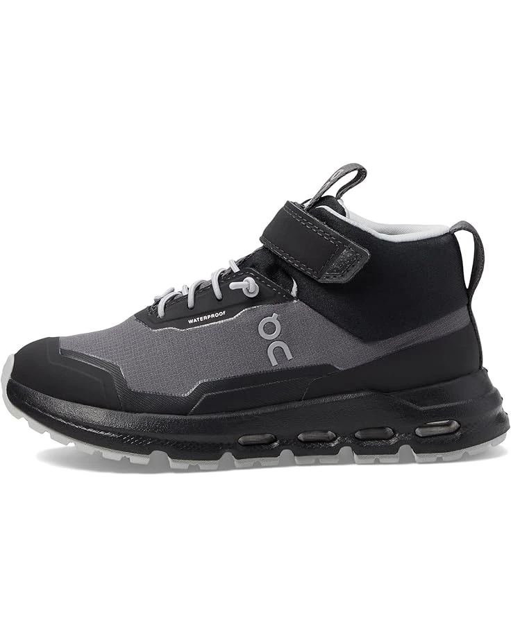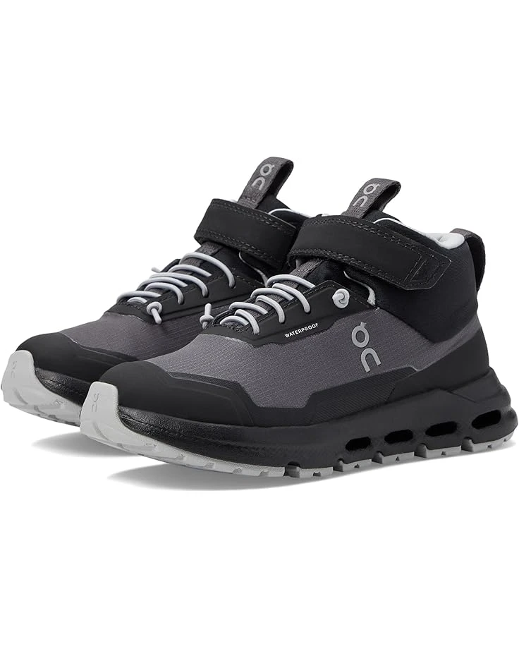 - Let your kiddo venture around and explore higher terrains wearing the comfortable On® Kids Cloudhero Mid Waterproof Hiking Boots. This round toe footwear features a hook-and-loop strap closure with elastic lace panel and back pull tabs for easy wear.